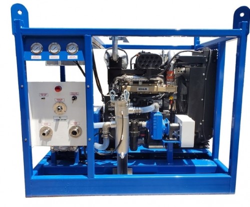 This is an Industrial workhorse which generates a super stream of high velocity cavitation bubbles for highly efficient cleaning which can strip fouling, corrosion and coatings to bare metal if desired, this unit is off-shore rated with an electric version available.
