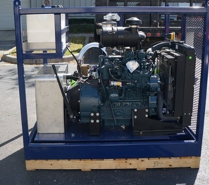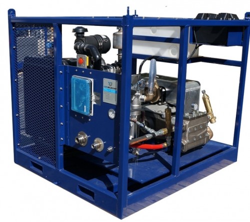 CaviBlaster 3040-D (30 gpm / 4000 psi) It's an Industrial marvel which generates a super stream of high velocity cavitation bubbles for highly efficient cleaning which can strip fouling, corrosion and coatings to bare metal if desired, this unit is off-shore rated with an electric version available.