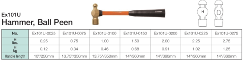 The CS Unitec Aluminum Bronze Ball Peen Hammer - EX101U Series is a non-sparking, non-magnetic, and corrosion-resistant safety tool designed for use in hazardous and sensitive environments. Manufactured from specialized alloys and backed by ISO 9001:2015 certification and a lifetime warranty, it is ideal for applications where safety and reliability are critical.