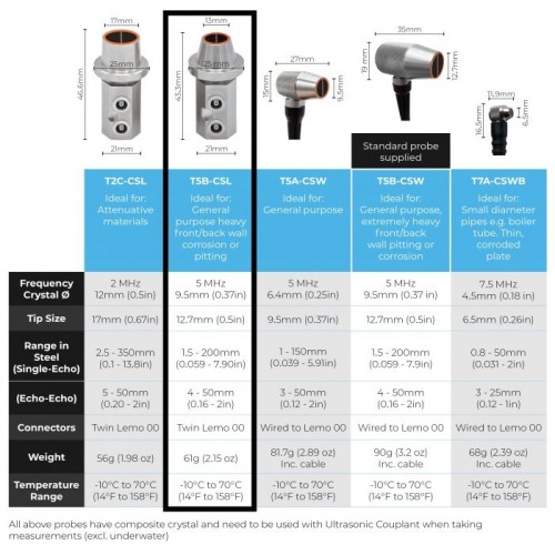 Cygnus 001-7235 Probe T5B Twin Crystal 5MHz 13/8mm for DIVE Mk2 UTG