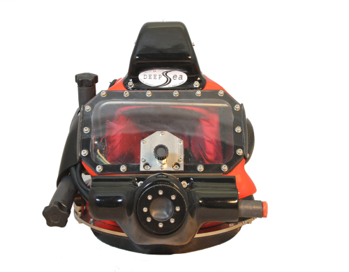 The DSL B-2 Caribe is equipped with double overpressure valves, a separated and silent freeflow and defog system, a communication system, an adjustable inliner, a bronze neckring with neoprene neckdam and an anti-panic closing/locking system.
