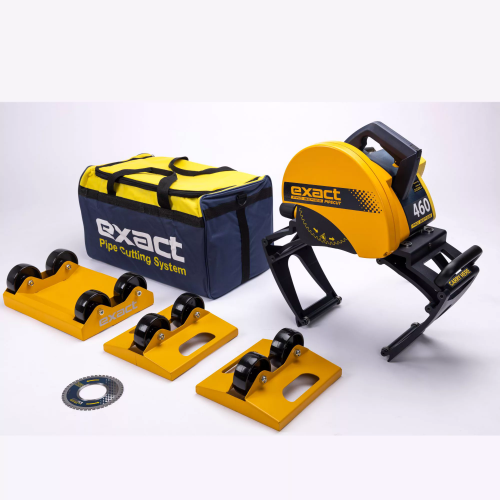 Like the other Exact machines, it is extremely safe and easy to use as a result of the well designed mechanics. The machine is portable and can be easily carried to where the cuts need to be done. You can cut steel pipes with wall thickness of (up to) 20 mm and 50 mm for plastics. All other pipe materials are suitable to be cut as well. Suitable on pipe diameters 100 – 460 mm. The incredibly strong motor along with other features and patented gripping unit makes a real timesaver on the worksite, boosting productiviness and leaving more time for other work.