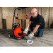 The drum carries up to 75 ft of 3/8” cable to clear 2” to 3” lines, or 1/2” cable for heavier work in 4” lines. For small drain work, you can order your Mini-Rooter Pro with a J-Drum for handling smaller, more flexible cables.