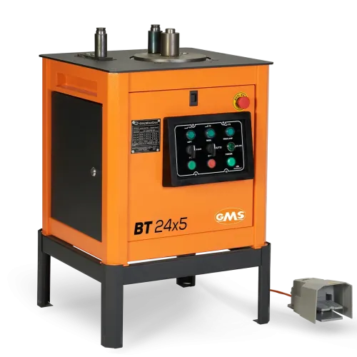 The GMS BT 24×5 is a portable rebar-bending machine designed for on-site use with quick set-up and high efficiency. Engineered for mobility and strength, it features a fixed centre-pin bending head and sturdy frame for repeatable, accurate bends of reinforcing steel. With a compact footprint and ergonomic design, the BT 24×5 supports various steel strengths and diameters—making it ideal for construction sites, precast yards, and fabrication workshops. Its durable build, optional digital controls, and straightforward operation deliver a reliable bending solution for rebar work.