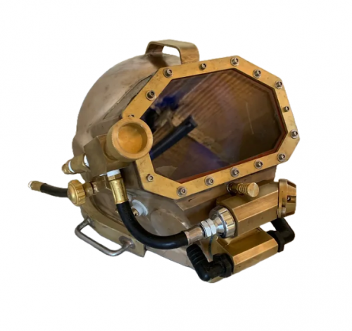 SKU 142269 Weight 34 Country of Manufacture Mfr. Model Number Gen-6a Link to User Manual No Link to Schematics No Link To Catalog No Technical Specifications Component Details Helmet Shell Cast silicon bronze, 1/4" thick Faceplate 1/2" thick Lexan; machined to fit into the flange; includes faceplate guard Demand Regulator Poseidon "Xstream", machined brass; NORSOK approved; C.E. certified; EN-250 cold water approved; EN-1533 approved; Rated to 656' for SCUBA; Optimal operating pressure: 125 psi over bottom Airtrain Material Gen-6a: Poseidon scuba hose standard; options: copper, Tungum; Gen-6n: Tungum tubing standard; options: copper, scuba hose Sideblock Manifold Based on a Swagelok valve; Machined brass body; adaptable plumbing; optional drysuit port Exhaust System Gen-6: Exhaust gases bypass the regulator, reducing CO2 retention; Gen-6a: Single valve exhaust; Gen-6n: Dual valve exhaust for dirty water Communications Standard 8-ohm speakers and microphone; Heavy-duty brass comm posts for 2-wire or Marsh Marine 4-wire 2-way comms; Superior communication due to bronze shell acoustics and Poseidon "Xstream" regulator Cams and Neck Dam Secure cam locks with pull-pins (Gen-6n) or nylon strap/buckles (Gen-6a) Head Cushion Attached with Velcro to prevent fabric ripping Oral/Nasal Made of silicon rubber for enhanced durability Weight Approximately 34 lbs Free Shipping No