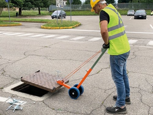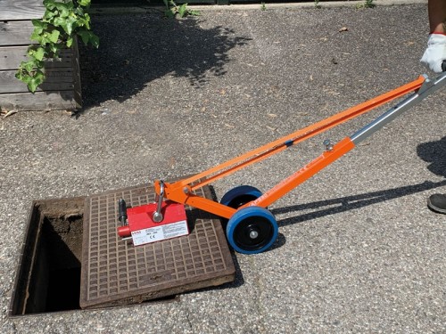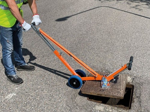 The lever is a simplified version of the APS90 and is ideal for crews who move multiple covers every day. The long upper arm extends to allow bending in confined spaces and for easy transportation on small vehicles.