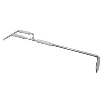 This is a robust yet light and versatile lever with beaks for lifting covers and grilles. The flat double beaks have hard, tempered steel tips which can be inserted into contact slots between the cover and frame. It is resistant to strong leverages, torsions and hammering. The beaks are also configured to scrape and clean the lifting cavity of covers from asphalt crusts and dirt.
