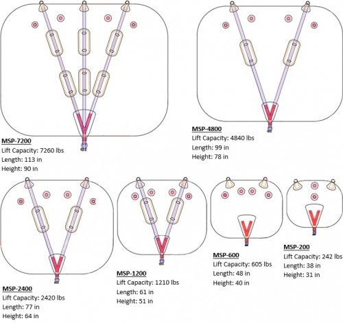 SKU 141320 Weight 26 Country of Manufacture Netherlands Mfr. Model Number MSP-2400 Link to User Manual No Link to Schematics No Link To Catalog No Technical Specifications Lift Capacity (lb/kg) 2420 / 1100 Height (in/cm) 64 / 162 Length (in/cm) 77 / 195 Weight (lb/kg) 28 / 12.6 Attachment Points 2 Top / 1 Bottom Free Shipping No