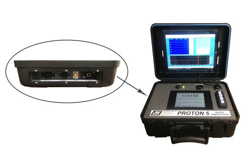 With a one Nano -Tesla (nT) sensitivity, it has the maximum usable sensitivity for a towed proton precession magnetometer. A two second cycle time gives a strong return signal and is fast enough to detect even small iron/steel targets. The PROTON 5 features a triaxial noise-cancelling sensor that allows omnidirectional towing without heading error or dead zone. The system is fully digitized and displays the current 5-digit measurement on an easy to read 6-inch LCD screen that is backlit for night operations. Up to 80 of the previous measurements are also displayed graphically in a history plot on the LCD. With the optional altimeter, distance off bottom of the towfish is displayed. User friendly menus allow easy configuration of all operation settings and system tuning directly from the top-side control box. An adjustable audio alarm lets the operator decide how much of a change in the baseline reading will cause the alarm to fire