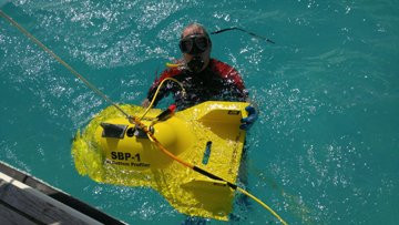 Fishers' SBP-1 has an advantage over most other competition as this unit is either pole mountable for shallow water searches or boat tow-able for search in deeper areas allowing superior versatility for the end user. The SBP-1 system includes the sonar towfish constructed of corrosion proof, high impact PVC, 150’ of cable (additional lengths are available up to 1,000 feet), the topside sonar processor box and laptop computer pre-loaded with the JW Fishers SONAR VIEW for Sub Bottom Profiler software. The 36-inch-long by 24-inch-wide towfish provides a very stable platform for the sonar transducer allowing the best possible images to be obtained. The SBP-1 is capable of penetrating up to 130 feet into the seabed. The sonar beam reflects off any solid objects below the seafloor and is sent topside for display and storage on the computer. An image is produced of any target of different density than the surrounding substrate.